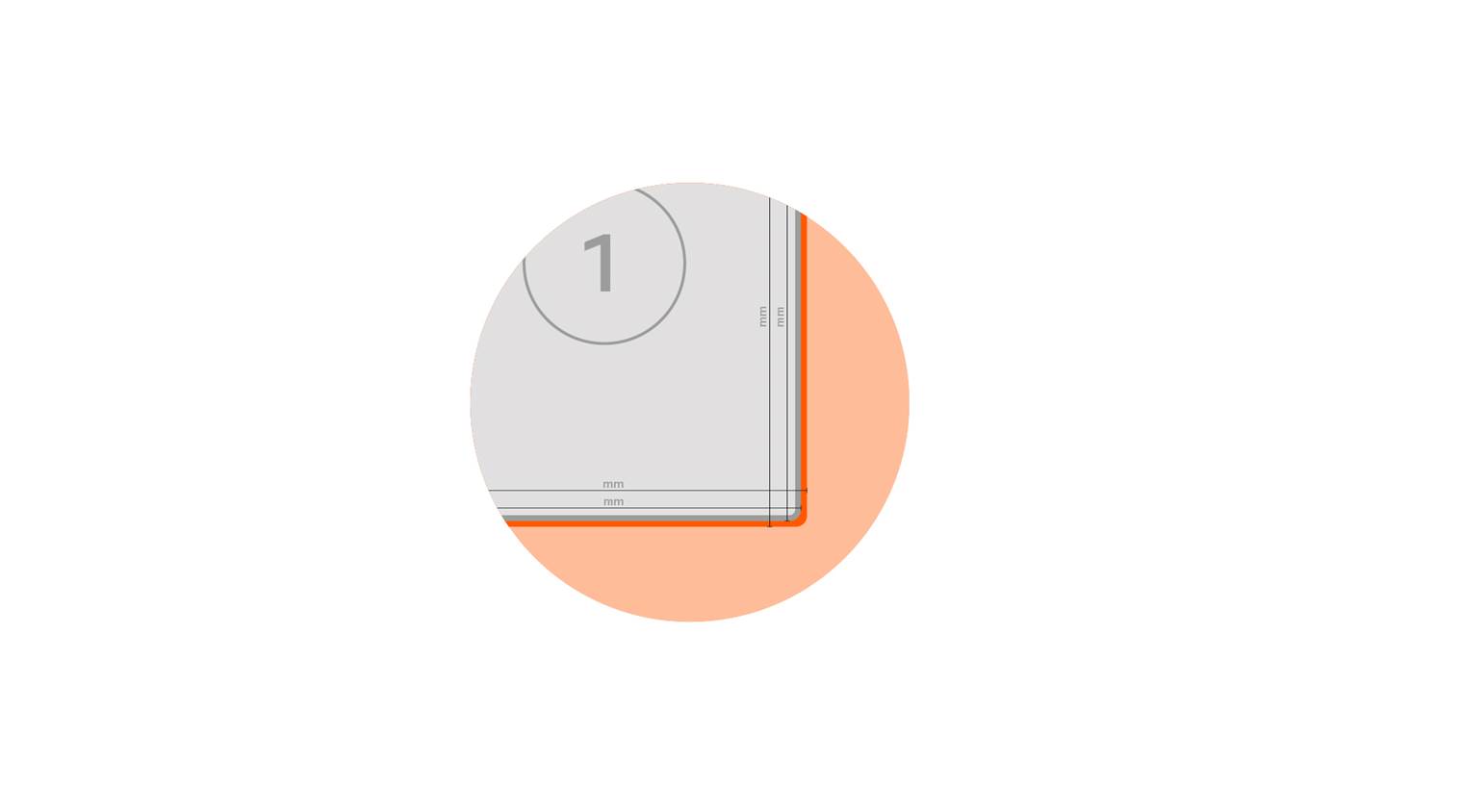 To enable borderless printing, we require a bleed in your artwork files. This is a coloured area around the printed image where the cutting takes place. Without bleed, white lines may appear in the edge area during cutting, so-called flashes.